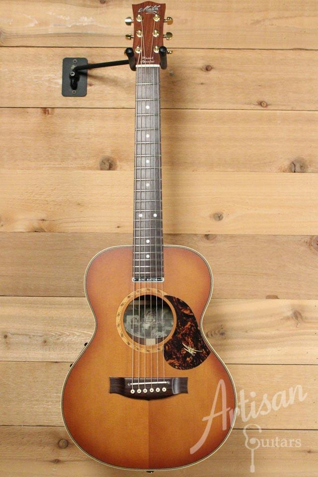 The Maton EMD Mini Maton Diesel Model is a small bodied guitar with a very big voice. Though it is a lot smaller than a standard dreadnought, this guitar packs a punch well above its perceived weight.. This models features an "AA Select" Grade Solid Sitka Spruce top, solid blackwood back and sides, AP5 pickup system, gold Grover machine heads, and a nostalgic Vintage Amber Stain. The added touch of the sunburst adds even more personality to this unique instrument.
