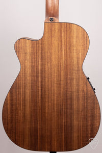 The proprietary Maton "808" body shape is similar, though slightly smaller that the US OM Model. However, the body depth of the 808 is substantially deeper at 4-7/8". This is significant, as moving the top and back further apart enhances the bass element within the tonal character of the voicing (bracing technique), complimenting the different wood combinations