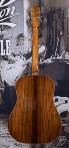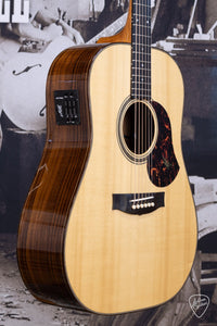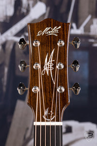 The Flatpicker by The Maton Custom Shop was a very basic choice to make. Create a Simple and Elegant straight up Dreadnought that could appeal to a variety of players from Bluegrass pickers to a home studio producer who wants a guitar with plenty of voice. This Custom Shop Model is a combination of Classic Looks, Classic Tones, and Classic Timbers. The European Spruce Top and Indian Rosewood back and sides are a fundamental combination for such a guitar. It had to be Bass heavy with thick midrange tones and piercing trebles. A Classic Mahogany One Piece neck adds to the big sound and lovers of the Classic Flat top acoustic guitar will not be disappointed. Just think Doc Watson or Tony Rice and you will be at home with the Flatpicker. Strummed in a song or Ragtime classic, it is said by Andy Allen that the the Flatpicker has been one of his favorite journeys as a Luthier.