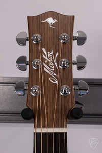 The Maton EBG-808-TE bears an light aging toner on the AAA Grade Sitka Spruce top. A light Vintage Amber stain on the Queensland Maple back, sides, and neck could easily be mistaken as Mahogany.