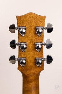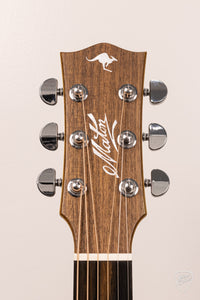 The Maton EBG-808-TE bears an light aging toner on the AAA Grade Sitka Spruce top. A light Vintage Amber stain on the Queensland Maple back, sides, and neck could easily be mistaken as Mahogany.