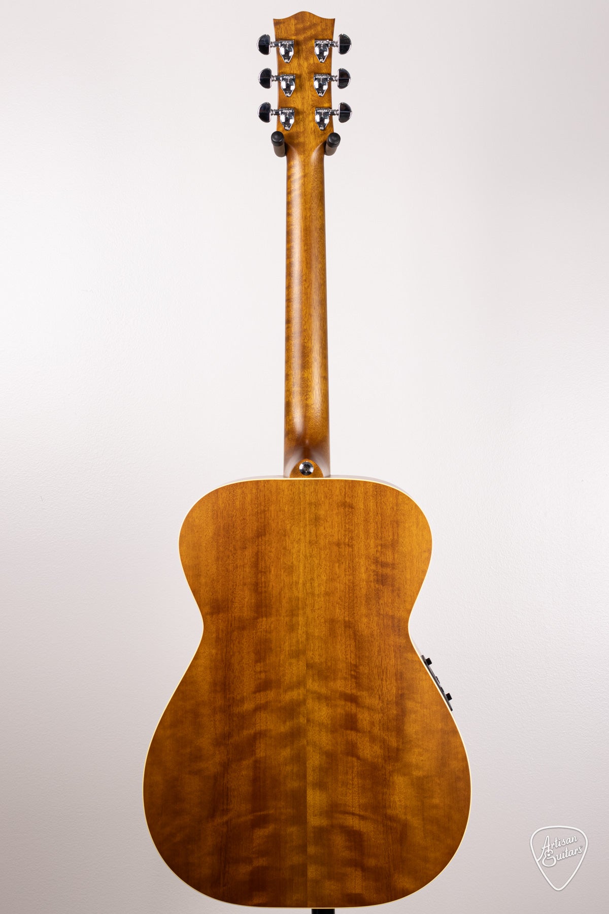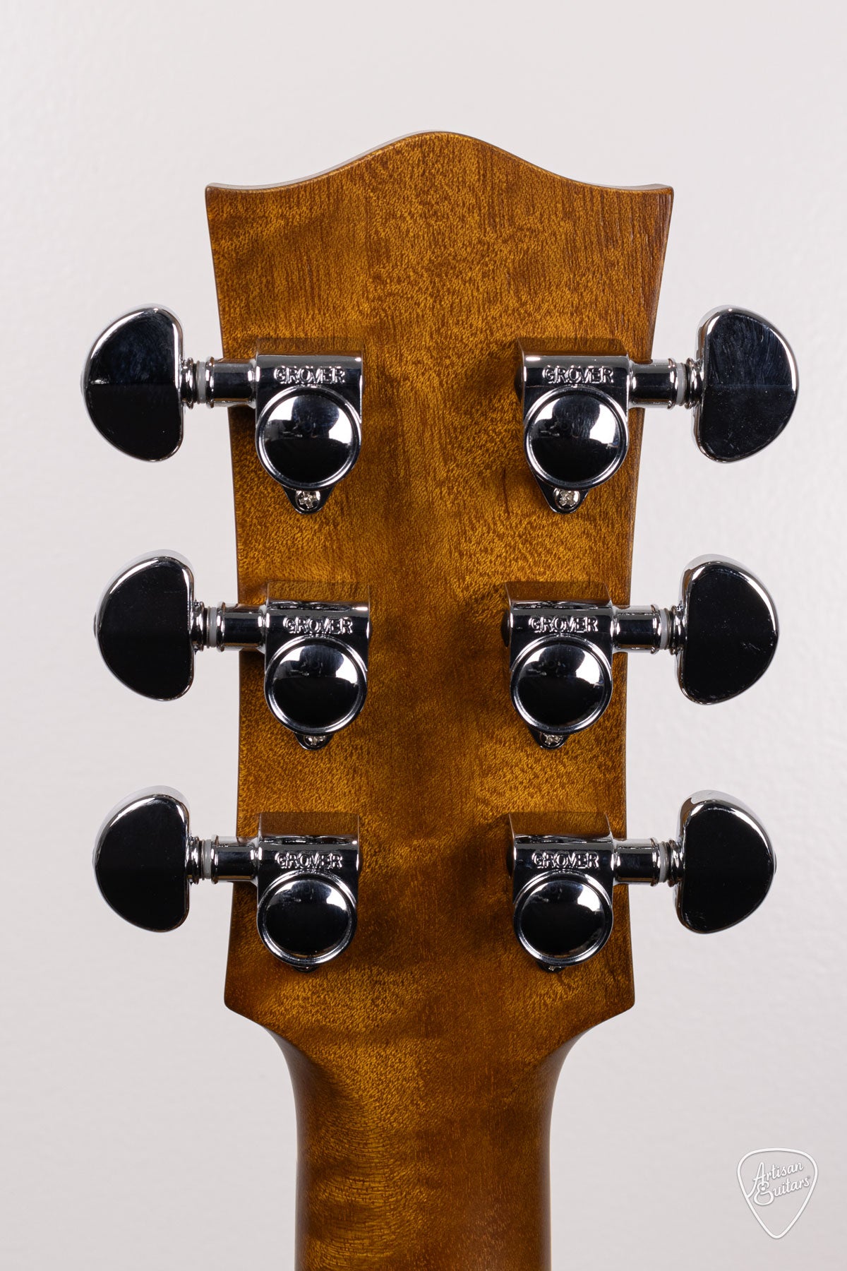 The Maton EBG-808-TE bears an light aging toner on the AAA Grade Sitka Spruce top. A light Vintage Amber stain on the Queensland Maple back, sides, and neck could easily be mistaken as Mahogany.