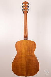 The Maton EBG-808-TE bears an light aging toner on the AAA Grade Sitka Spruce top. A light Vintage Amber stain on the Queensland Maple back, sides, and neck could easily be mistaken as Mahogany.
