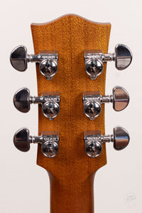 The Maton EBG-808-TE bears an light aging toner on the AAA Grade Sitka Spruce top. A light Vintage Amber stain on the Queensland Maple back, sides, and neck could easily be mistaken as Mahogany.