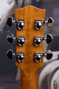 The Maton EBG-808-TEC bears an light aging toner on the AAA Grade Sitka Spruce top. A light Vintage Amber stain on the Queensland Maple back, sides, and neck could easily be mistaken as Mahogany.