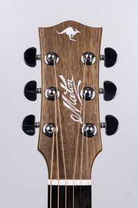 The Maton EBG-808-TEC bears an light aging toner on the AAA Grade Sitka Spruce top. A light Vintage Amber stain on the Queensland Maple back, sides, and neck could easily be mistaken as Mahogany.