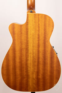 The proprietary Maton "808" body shape is similar, though slightly smaller that the US OM Model. However, the body depth of the 808 is substantially deeper at 4-7/8". This is significant, as moving the top and back further apart enhances the bass element within the tonal character of the voicing (bracing technique), complimenting the different wood combinations