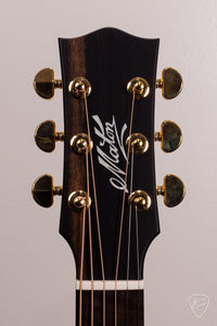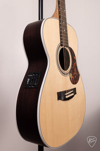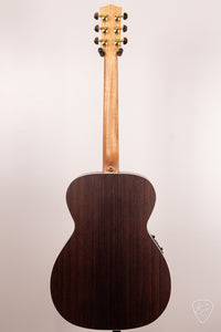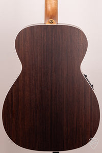 The result is a small-bodied guitar with a full tonal response that rings like a bell. There is no lack of bass due to the thinner body depth (the body is 10mm thinner than the 75th Anniversary body) as the depth is offset by the incredible rich bass produced by the rosewood back and sides. The reduced body depth also provides a little more focus in front of the guitar which will make it a brilliant recording instrument.