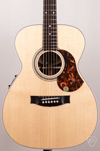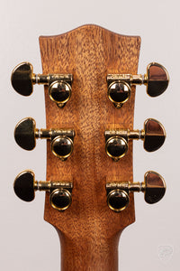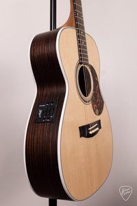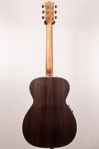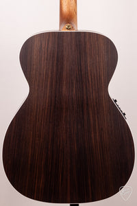 The result is a small-bodied guitar with a full tonal response that rings like a bell. There is no lack of bass due to the thinner body depth (the body is 10mm thinner than the 75th Anniversary body) as the depth is offset by the incredible rich bass produced by the rosewood back and sides. The reduced body depth also provides a little more focus in front of the guitar which will make it a brilliant recording instrument.