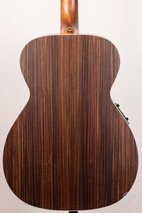 The result is a small-bodied guitar with a full tonal response that rings like a bell. There is no lack of bass due to the thinner body depth (the body is 10mm thinner than the 75th Anniversary body) as the depth is offset by the incredible rich bass produced by the rosewood back and sides. The reduced body depth also provides a little more focus in front of the guitar which will make it a brilliant recording instrument.