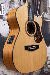 The Maton SRS808 incorporates solid Blackwood back and sides and a Western Red Cedar top. The SRS808 is an absolutely beautiful guitar and combines the warm, full tones of Blackwood with the top end sparkle of Cedar.
