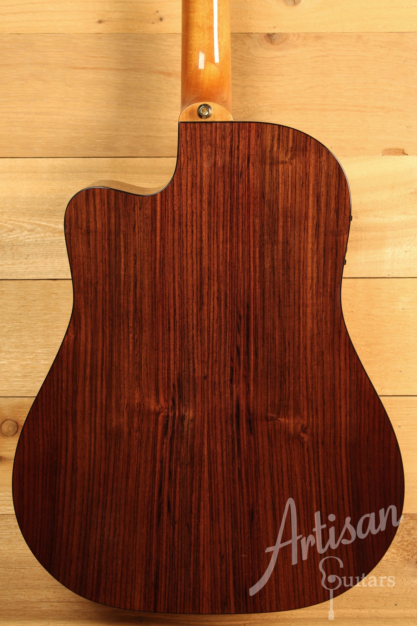 With a familiar combination of Sitka Spruce and Indian Rosewood, this guitar performs and sounds absolutley wonderful. Clear high range tones with very supportive low and mid range tones with balance across the board.