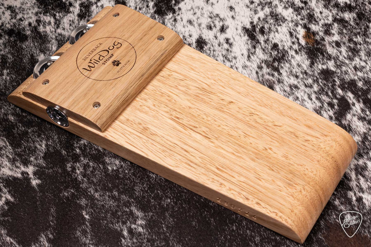 Wild Dog Silverback stomps are their most popular model. Handcrafted in Australian, built from Tasmanian Oak. The Silverback is fitted with silver jingles that can be switched on or off.
