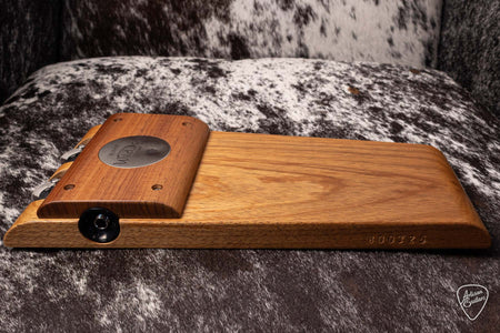 The Wild Dog Bunyip Stomp Box is much like the Silverback with its built in tambourine jingles, however it has all solid Australian timbers as well. The jingle feature can easily be switched off with the black roller on threaded rod, which makes this a very versatile stomper. The raised tone cap provides an instant sweet spot for a deep warm tone.