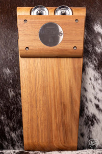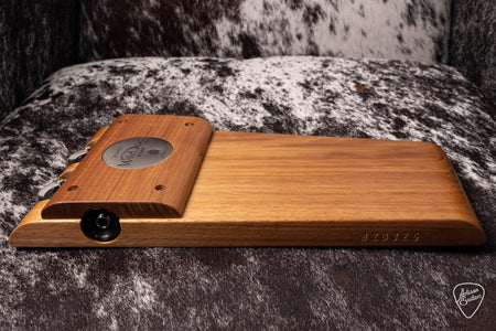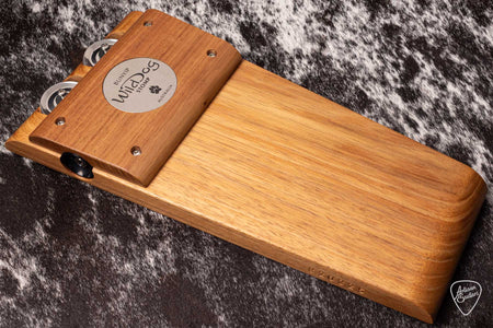 The Wild Dog Bunyip Stomp Box is much like the Silverback with its built in tambourine jingles, however it has all solid Australian timbers as well. The jingle feature can easily be switched off with the black roller on threaded rod, which makes this a very versatile stomper. The raised tone cap provides an instant sweet spot for a deep warm tone.