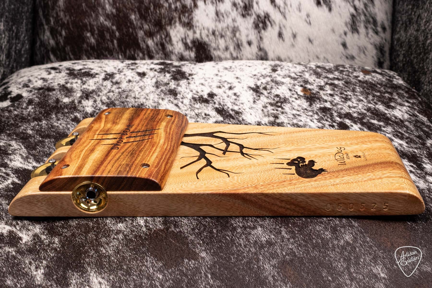New for 2026, the Wild Dog Drop Bear stomp is handcrafted from solid native woods, with their unique jingles feature, which can be switched off quick & easily with the roller thumb-wheels.