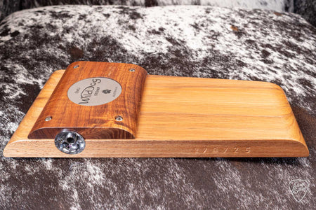 All solid timbers give this stomp box a distinctive look and serious bottom end thump. It also features a fatigue reducing rolled heel which allows the foot to pivot rather than lift, thus significantly reducing the tapping effort. The raised tone bar provides an instant sweet spot for a deep warm tone.