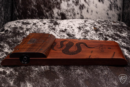 New for 2026, the Wild Dog Red Belly Black stomp is handcrafted from solid native woods, with their unique jingles feature, which can be switched off quick & easily with the roller thumb-wheels.