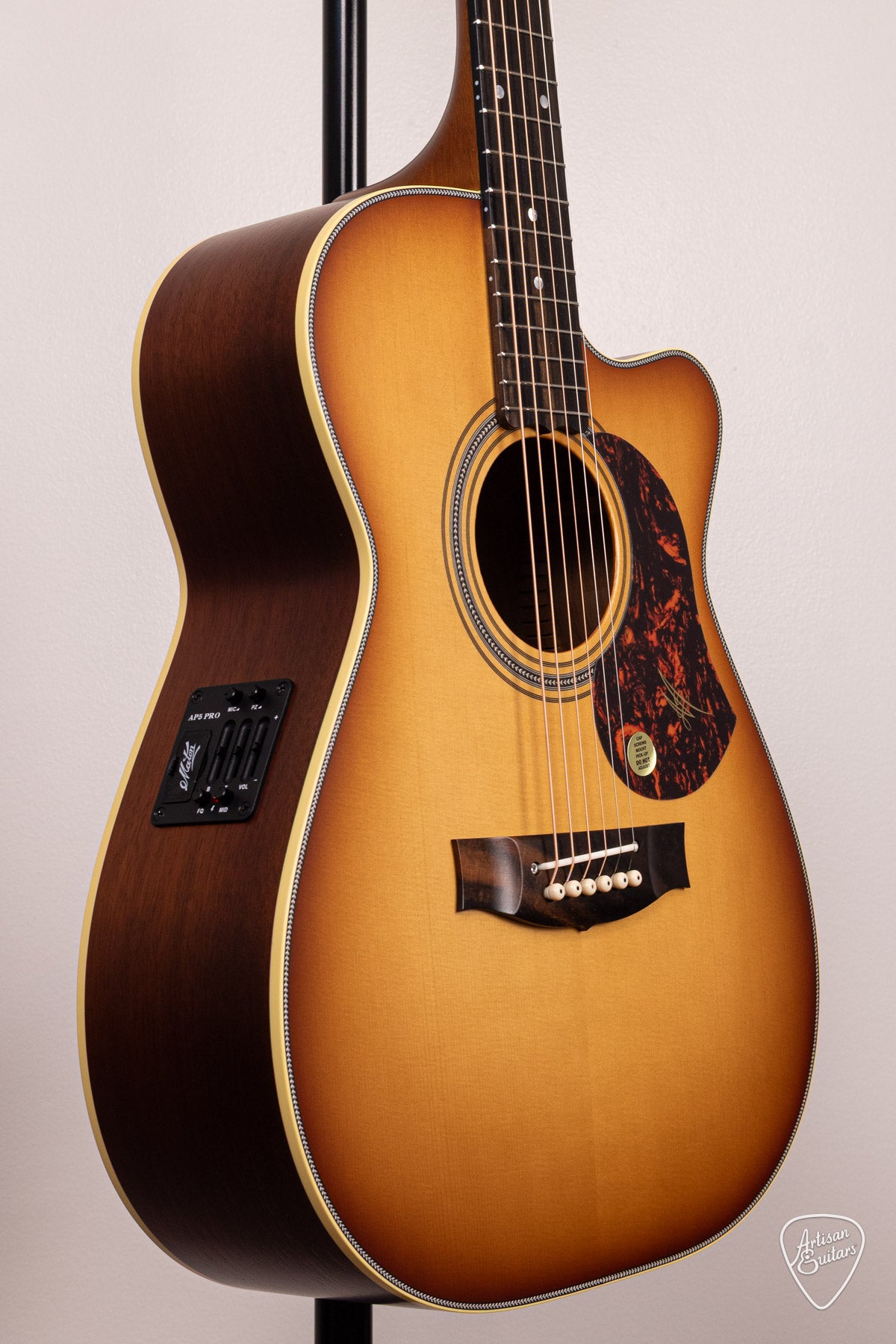 The Maton Nashville 808 model features Sitka Spruce over Victorian Blackwood. It has a hand painted, full body sunburst, with an ultra-thin satin nitrocellulose lacquer finish. The thin finish creates excellent responsiveness and resonance!