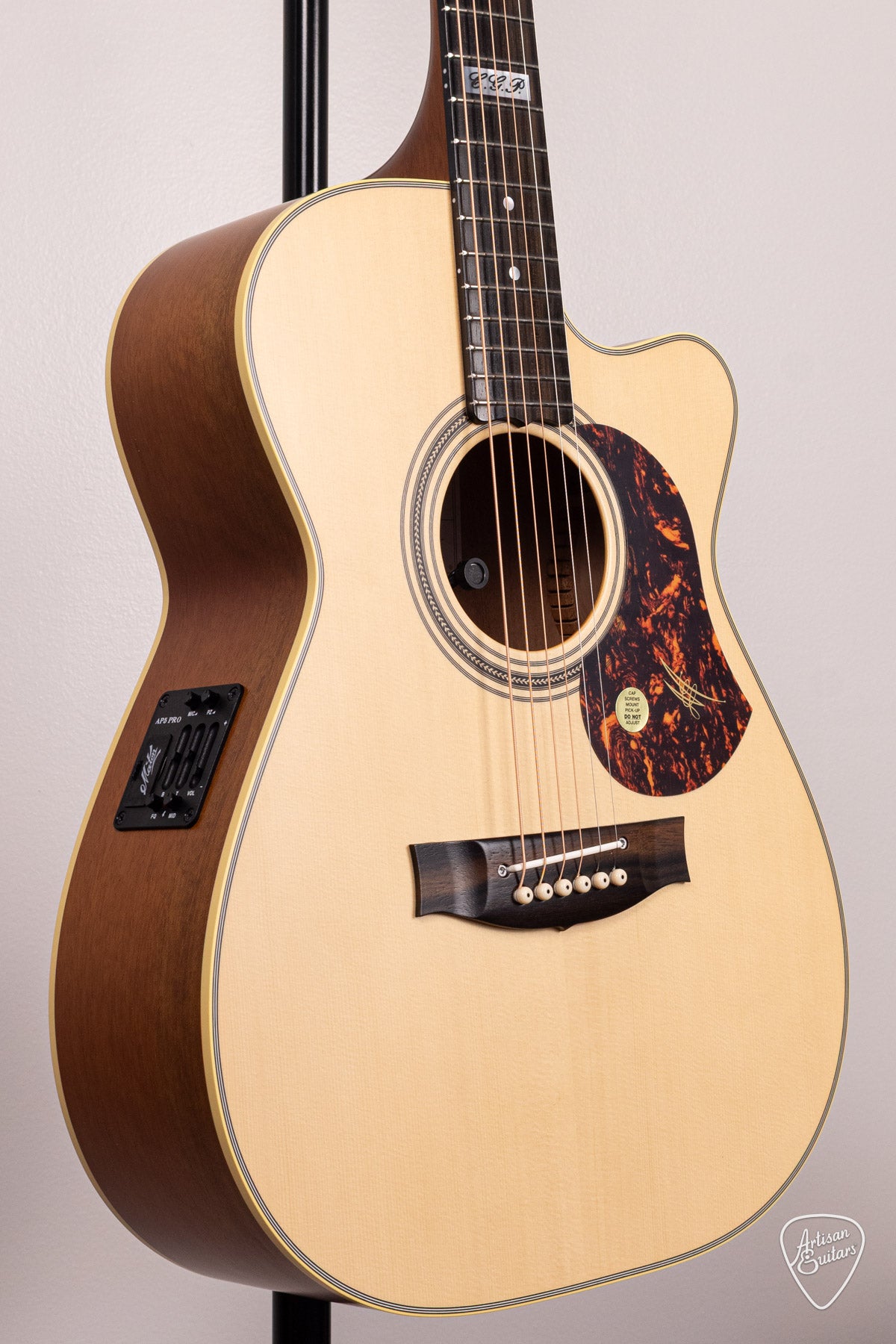 The Tommy Emmanuel models feature a Mother of Pearl block inlay on the 12th Fret, engraved with "C.G.P." The acronym stands for "Certified Guitar Player," a title bestowed on Tommy by Chet Atkins and held by only 3 other guitarists in the world - John Knowles, Jerry Reed, and Steve Wariner.