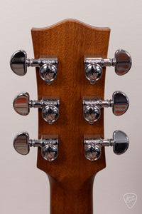 The Maton EBG-808-TEC bears an light aging toner on the AAA Grade Sitka Spruce top. A light Vintage Amber stain on the Queensland Maple back, sides, and neck could easily be mistaken as Mahogany.