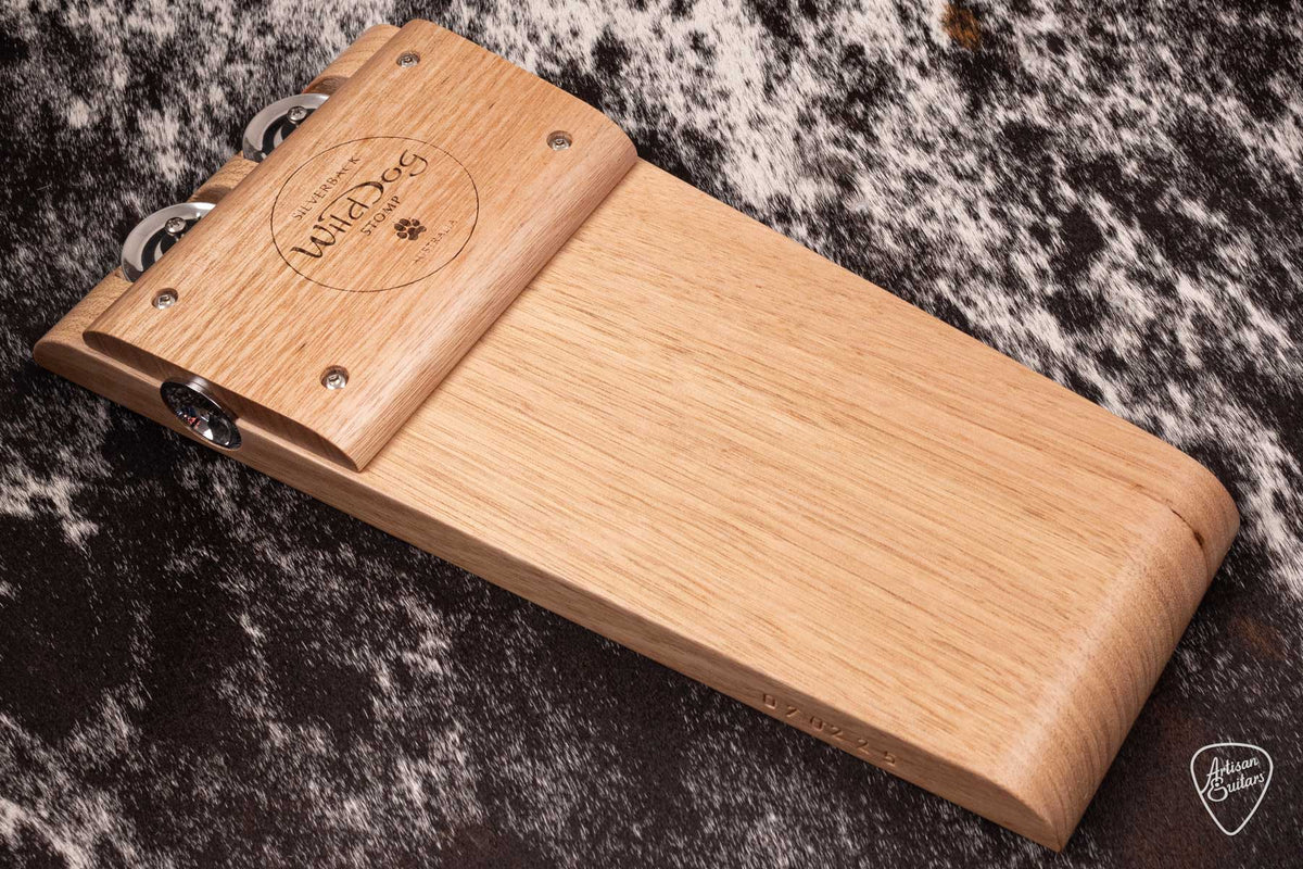 Wild Dog Silverback stomps are their most popular model. Handcrafted in Australian, built from Tasmanian Oak. The Silverback is fitted with silver jingles that can be switched on or off.