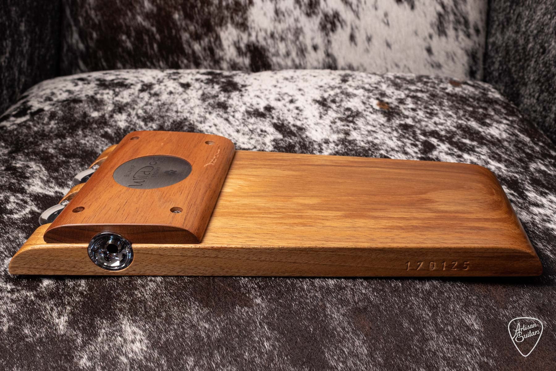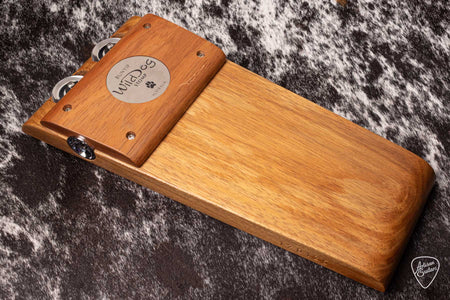 The Wild Dog Bunyip Stomp Box is much like the Silverback with its built in tambourine jingles, however it has all solid Australian timbers as well. The jingle feature can easily be switched off with the black roller on threaded rod, which makes this a very versatile stomper. The raised tone cap provides an instant sweet spot for a deep warm tone.