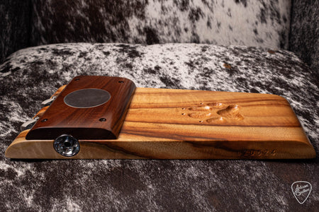 When only the best will do. Wild Dog offers a Custom Shop stomp featuring Master Grade Hardwoods. It's not only beautiful but offers a huge rumbling bass tone and with added hand carved Paw print to finish off the look.