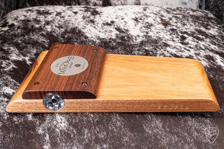 All solid timbers give this stomp box a distinctive look and serious bottom end thump. It also features a fatigue reducing rolled heel which allows the foot to pivot rather than lift, thus significantly reducing the tapping effort. The raised tone bar provides an instant sweet spot for a deep warm tone.