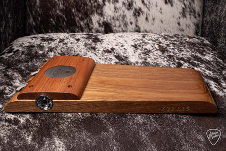 The Wild Dog Bunyip Stomp Box is much like the Silverback with its built in tambourine jingles, however it has all solid Australian timbers as well. The jingle feature can easily be switched off with the black roller on threaded rod, which makes this a very versatile stomper. The raised tone cap provides an instant sweet spot for a deep warm tone.