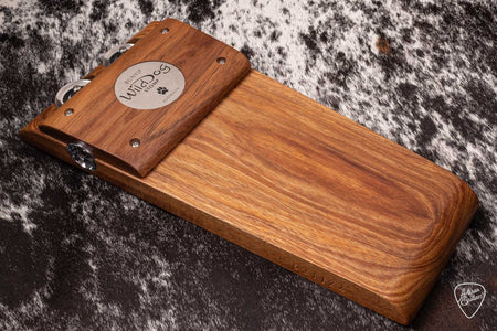 The Wild Dog Bunyip Stomp Box is much like the Silverback with it’s built in tambourine jingles, however it has all solid Australian timbers as well. The new jingle feature can easily be switched off with the black roller on threaded rod, which makes this a very versatile stomper. The raised tone cap provides an instant sweet spot for a deep warm tone.