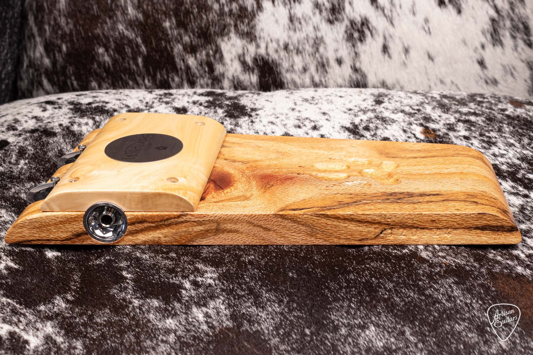 When only the best will do. Wild Dog offers a Custom Shop stomp featuring Master Grade Hardwoods.  It's not only beautiful but offers a huge rumbling bass tone and with added hand carved Paw print to finish off the look.