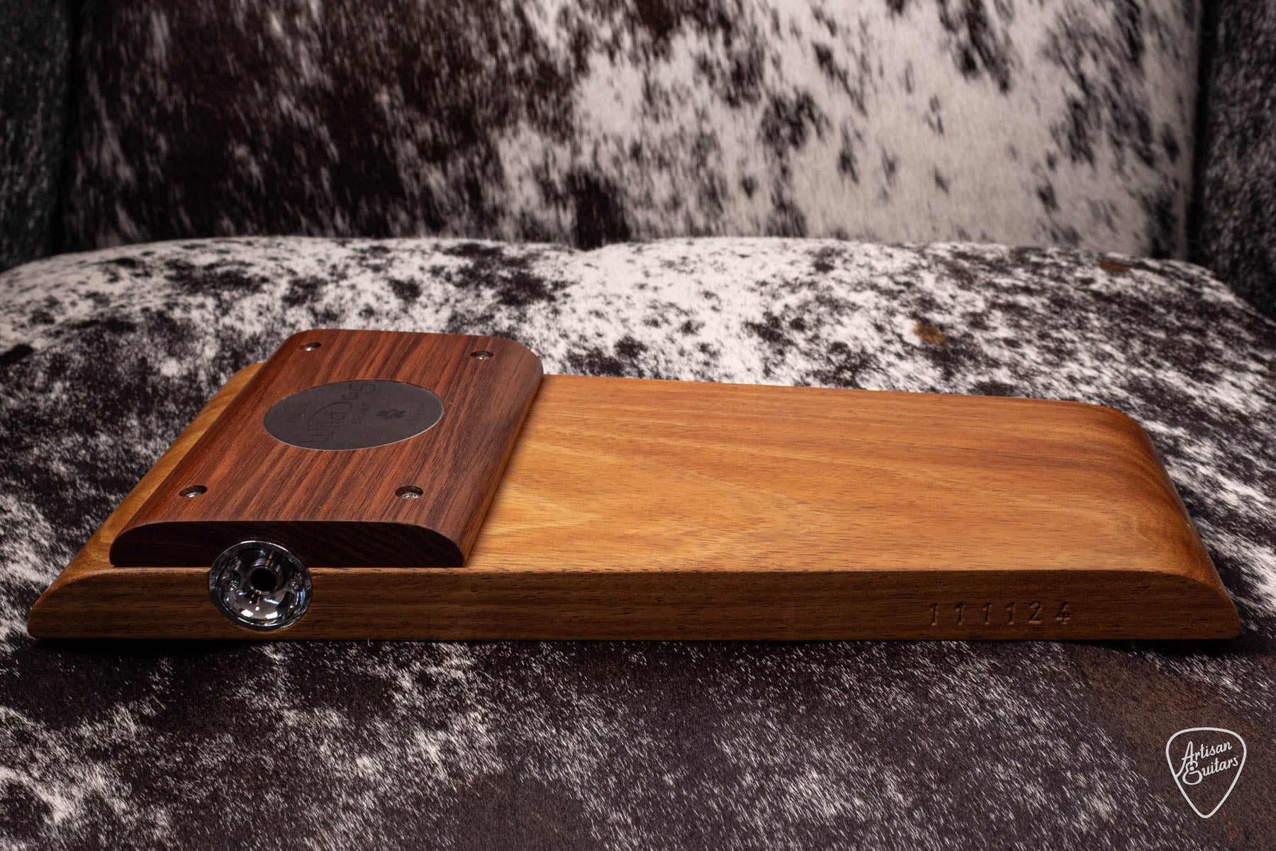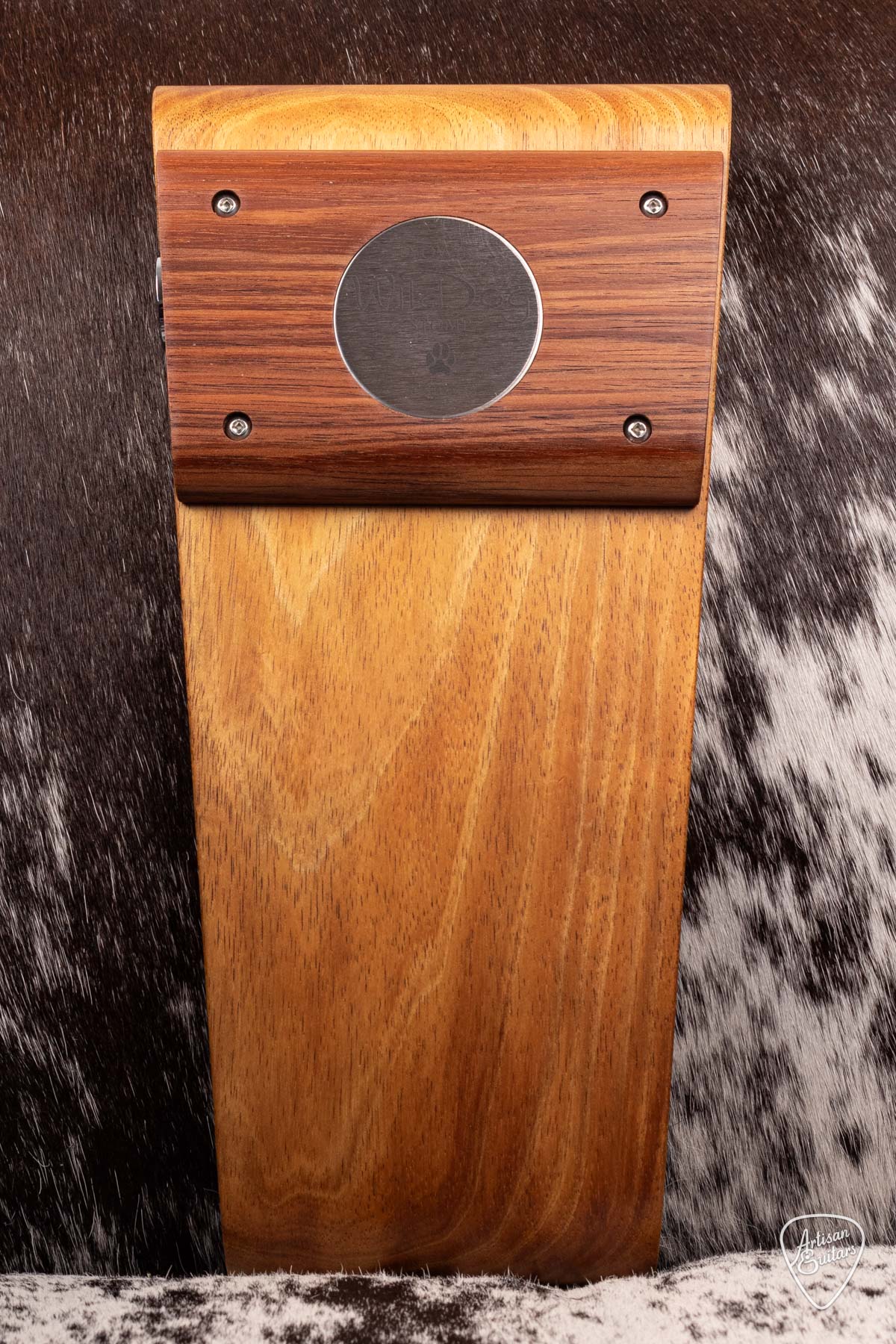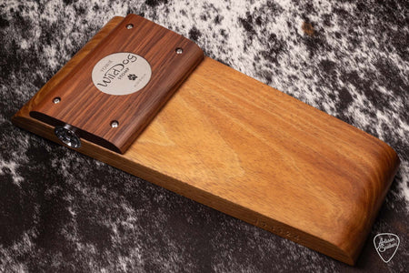 The Yowie has long been the front runner of the Wild Dog range. All solid timbers give this stomp box a distinctive look and serious bottom end thump. It also features a fatigue reducing rolled heel which allows the foot to pivot rather than lift, thus significantly reducing the tapping effort. The raised tone bar provides an instant sweet spot for a deep warm tone.