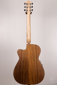 The proprietary Maton "808" body shape is similar, though slightly smaller that the US OM Model. However, the body depth of the 808 is substantially deeper at 4-7/8". This is significant, as moving the top and back further apart enhances the bass element within the tonal character of the voicing (bracing technique), complimenting the different wood combinations