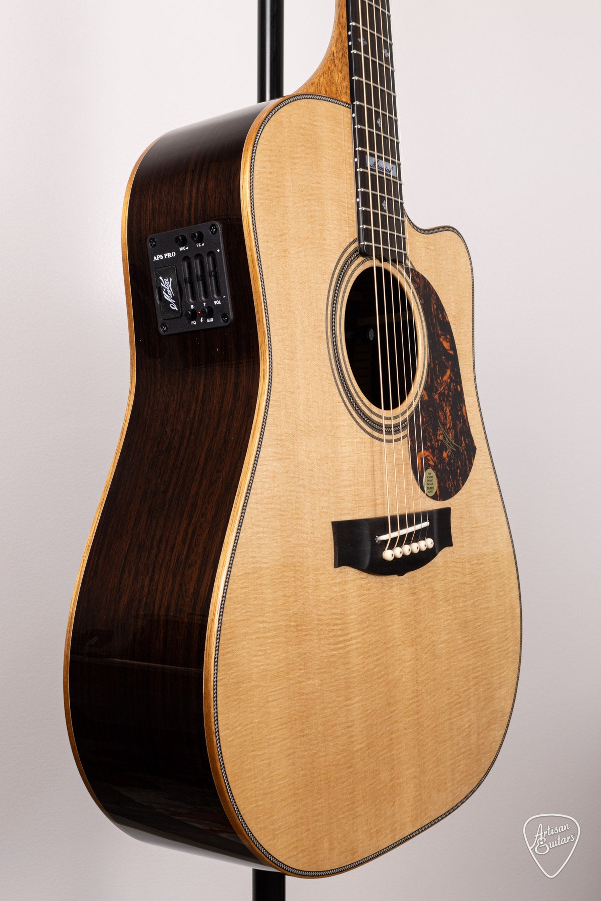With a familiar combination of Sitka Spruce and Indian Rosewood, this guitar performs and sounds absolutely wonderful. Clear high range tones with very supportive low and mid range tones with balance across the board. Solid complexity and overtones, without the boomy bass.