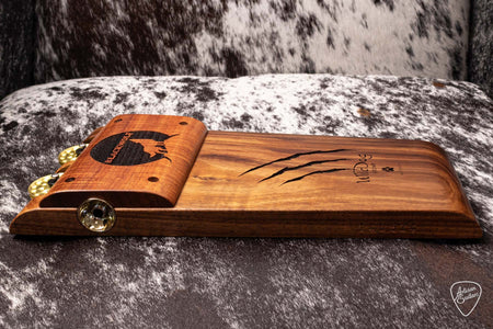 Our Custom Shop Blackwolf is the big dog in the range for the most discerning musician. Made from figured Blackwood, is not only visually incredible but offers a huge rumbling bass tone and with added etched claw marks to finish it off... It's not only beautiful but offers a huge rumbling bass tone, with laser engraved logo to finish off the look.