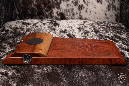 When only the best will do. Wild Dog offers a Custom Shop stomp featuring Master Grade Hardwoods.  It's not only beautiful but offers a huge rumbling bass tone and with added hand carved Paw print to finish off the look.